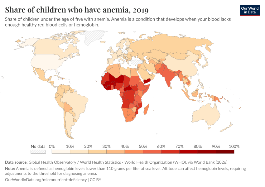 Hannah Ritchie (2024) - “Billions of people suffer from anemia, but there are cheap ways to reduce this” Published online at OurWorldinData.org. Retrieved from: 'https://enhance-catalog-improvements.owid.pages.dev:8789/20260202-181317/billions-people-suffer-anemia-cheap-ways-reduce.html' [Online Resource] (archived on February 2, 2026).BibTeX citation