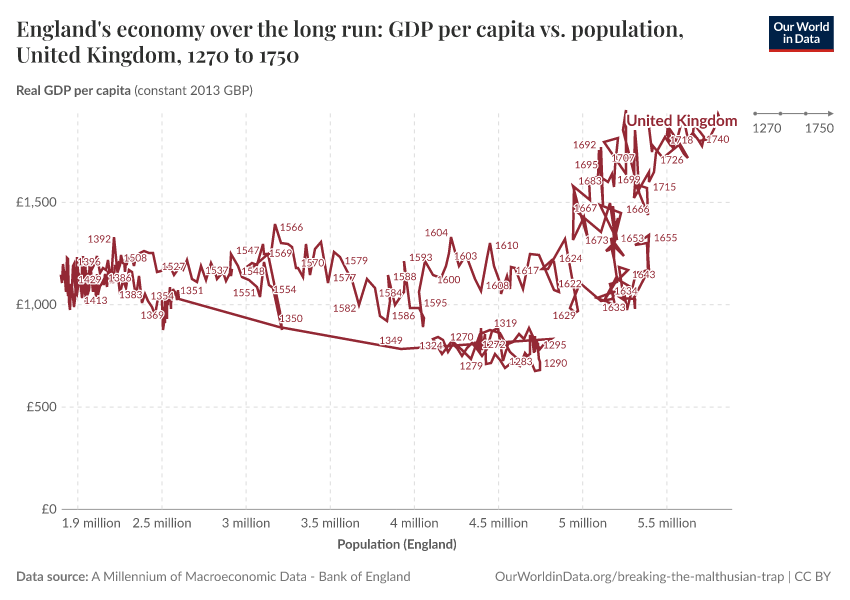 Max Roser (2020) - “Breaking out of the Malthusian trap: How pandemics allow us to understand why our ancestors were stuck in poverty” Published online at OurWorldinData.org. Retrieved from: 'https://enhance-catalog-improvements.owid.pages.dev:8789/20251125-173858/breaking-the-malthusian-trap.html' [Online Resource] (archived on November 25, 2025).BibTeX citation