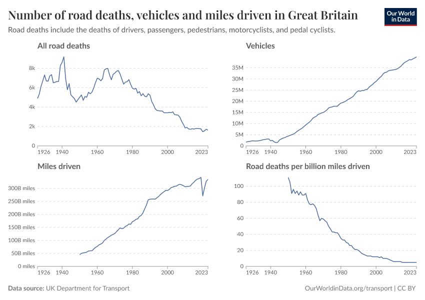 Hannah Ritchie (2025) - “How Britain built some of the world’s safest roads” Published online at OurWorldinData.org. Retrieved from: 'https://enhance-catalog-improvements.owid.pages.dev:8789/20260211-174736/britain-safest-roads-history.html' [Online Resource] (archived on February 11, 2026).BibTeX citation