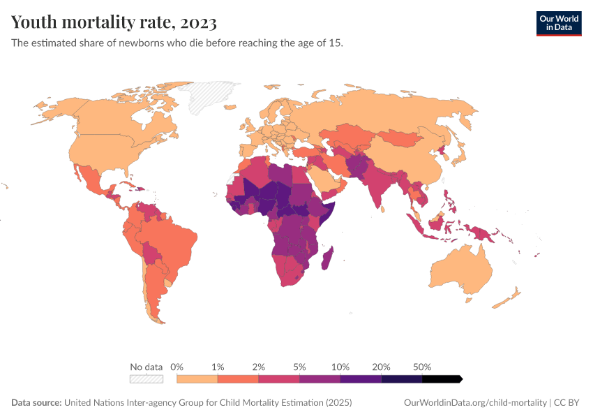 Saloni Dattani, Fiona Spooner, Hannah Ritchie, and Max Roser (2023) - “Child and Infant Mortality” Published online at OurWorldinData.org. Retrieved from: 'https://enhance-catalog-improvements.owid.pages.dev/child-mortality' [Online Resource]BibTeX citation