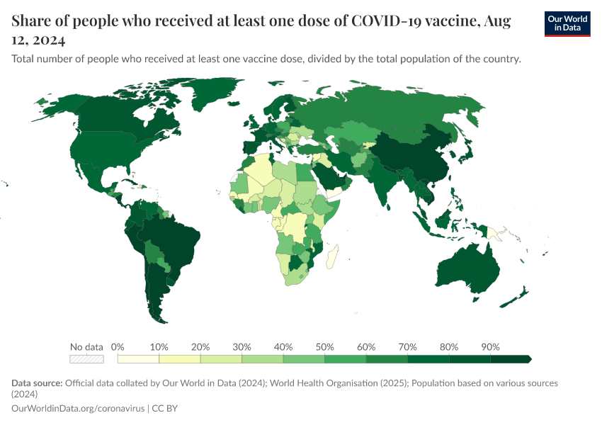 Edouard Mathieu, Hannah Ritchie, Lucas Rodés-Guirao, Cameron Appel, Daniel Gavrilov, Charlie Giattino, Joe Hasell, Bobbie Macdonald, Saloni Dattani, Diana Beltekian, Esteban Ortiz-Ospina, and Max Roser (2020) - “Coronavirus (COVID-19) Vaccinations” Published online at OurWorldinData.org. Retrieved from: 'https://enhance-catalog-improvements.owid.pages.dev:8789/20260224-080822/covid-vaccinations.html' [Online Resource] (archived on February 24, 2026).BibTeX citation