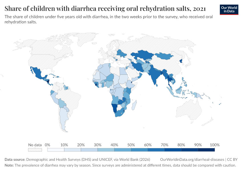 This page shows estimates of diarrheal death rates worldwide and the pathogens that cause them. We also offer data on access to public health measures and how they have changed.