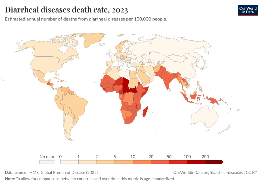 Saloni Dattani, Fiona Spooner, Hannah Ritchie, and Max Roser (2023) - “Diarrheal Diseases” Published online at OurWorldinData.org. Retrieved from: 'https://enhance-catalog-improvements.owid.pages.dev/diarrheal-diseases' [Online Resource]BibTeX citation