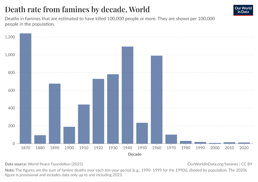 Bastian Herre, Veronika Samborska, Joe Hasell, and Max Roser (2017) - “Famines” Published online at OurWorldinData.org. Retrieved from: 'https://enhance-catalog-improvements.owid.pages.dev/famines' [Online Resource]