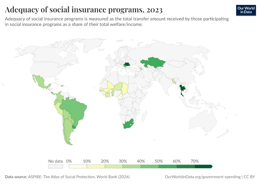 “Data Page: Adequacy of social insurance programs”. Our World in Data (2026). Data adapted from ASPIRE: The Atlas of Social Protection, World Bank. Retrieved from https://enhance-catalog-improvements.owid.pages.dev:8789/20260202-181317/grapher/adequacy-of-social-insurance-programs.html [online resource] (archived on February 2, 2026).How to cite this data