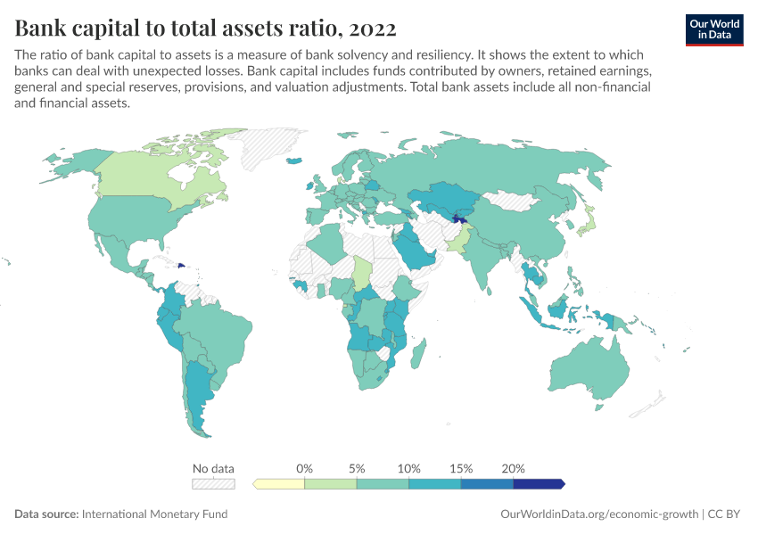 “Data Page: Bank capital to total assets ratio”. Our World in Data (2026). Data adapted from International Monetary Fund. Retrieved from https://enhance-catalog-improvements.owid.pages.dev:8789/20251120-211749/grapher/bank-capital-to-total-assets-ratio.html [online resource] (archived on November 20, 2025).How to cite this data