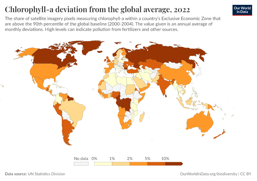 “Data Page: Chlorophyll-a deviation from the global average”. Our World in Data (2026). Data adapted from UN Statistics Division. Retrieved from https://enhance-catalog-improvements.owid.pages.dev:8789/20260130-180113/grapher/chlorophyll-a-deviation-from-the-global-average.html [online resource] (archived on January 30, 2026).How to cite this data