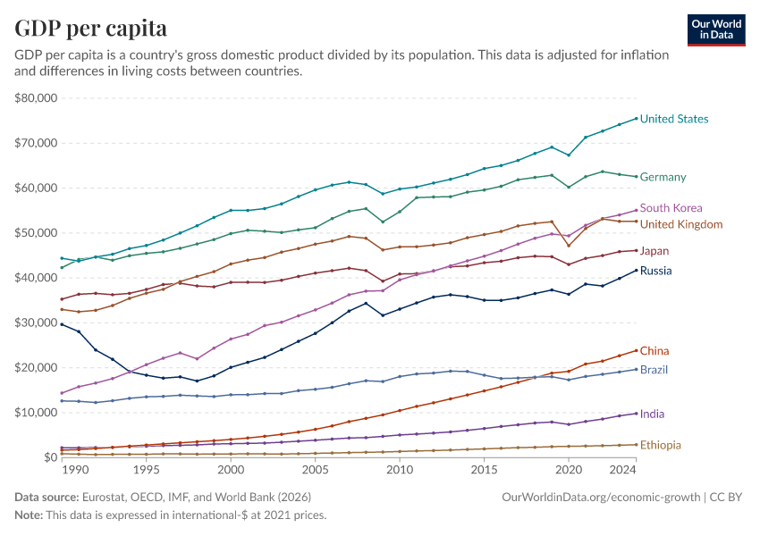 Eurostat, OECD, IMF, and World Bank (2026) – with minor processing by Our World in Data. “GDP per capita – World Bank – In constant international-$” [dataset]. Eurostat, OECD, IMF, and World Bank, “World Development Indicators 125” [original data]. Retrieved February 24, 2026 from https://enhance-catalog-improvements.owid.pages.dev:8789/20260202-180243/grapher/gdp-per-capita-worldbank.html (archived on February 2, 2026).