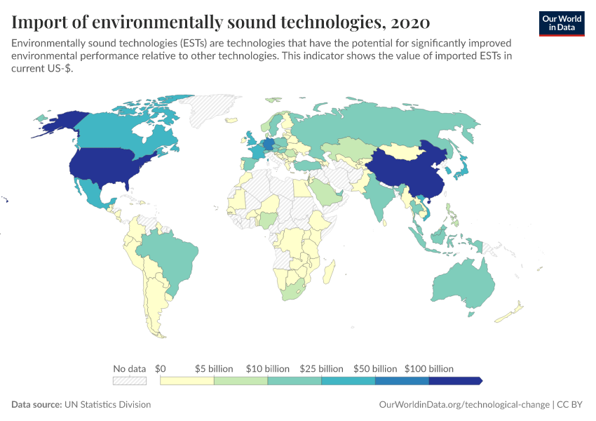 “Data Page: Import of environmentally sound technologies”. Our World in Data (2026). Data adapted from UN Statistics Division. Retrieved from https://enhance-catalog-improvements.owid.pages.dev:8789/20260130-180113/grapher/import-of-environmentally-sound-technologies.html [online resource] (archived on January 30, 2026).How to cite this data