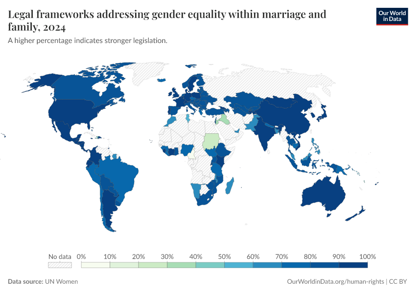 “Data Page: Legal frameworks addressing gender equality within marriage and family”. Our World in Data (2026). Data adapted from UN Women. Retrieved from https://enhance-catalog-improvements.owid.pages.dev:8789/20260130-180113/grapher/legal-frameworks-gender-equality-within-marriage-and-family.html [online resource] (archived on January 30, 2026).How to cite this data