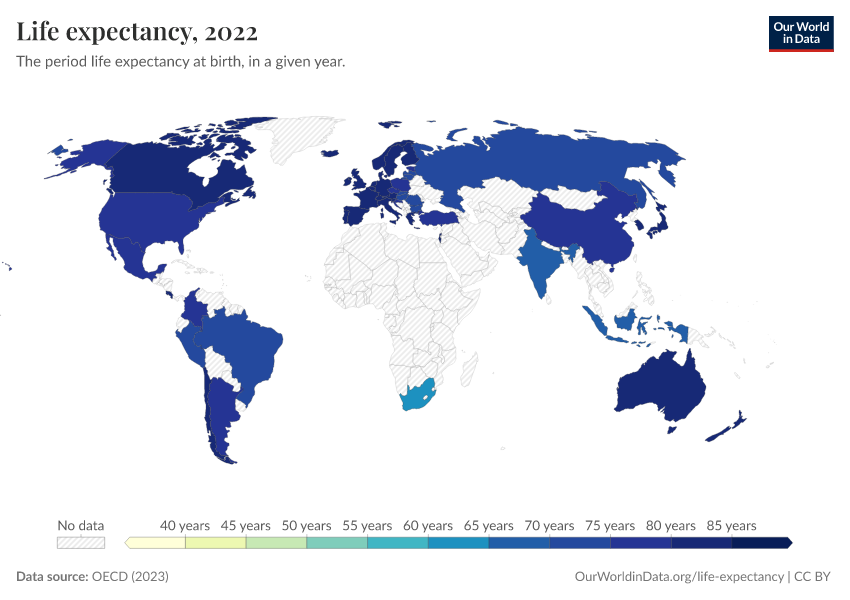“Data Page: Life expectancy at birth”, part of the following publication: Saloni Dattani, Lucas Rodés-Guirao, Hannah Ritchie, Esteban Ortiz-Ospina, and Max Roser (2023) - “Life Expectancy”. Data adapted from OECD. Retrieved from https://enhance-catalog-improvements.owid.pages.dev:8789/20250909-093708/grapher/life-expectancy-at-birth-oecd.html [online resource] (archived on September 9, 2025).How to cite this data