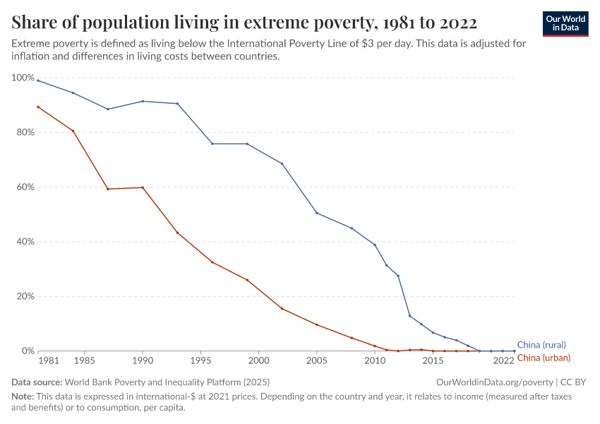 World Bank Poverty and Inequality Platform (2025) – with major processing by Our World in Data. “Share of population living in extreme poverty – World Bank” [dataset]. World Bank Poverty and Inequality Platform, “World Bank Poverty and Inequality Platform (PIP) 20250930_2021, 20250930_2017” [original data]. Retrieved February 24, 2026 from https://enhance-catalog-improvements.owid.pages.dev:8789/20260127-114142/grapher/share-of-population-in-extreme-poverty.html (archived on January 27, 2026).