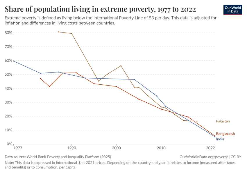 “Data Page: Share of population living in extreme poverty”, part of the following publication: Joe Hasell, Bertha Rohenkohl, Pablo Arriagada, Esteban Ortiz-Ospina, and Max Roser (2022) - “Poverty”. Data adapted from World Bank Poverty and Inequality Platform. Retrieved from https://enhance-catalog-improvements.owid.pages.dev:8789/20260127-114142/grapher/share-of-population-in-extreme-poverty.html [online resource] (archived on January 27, 2026).How to cite this data