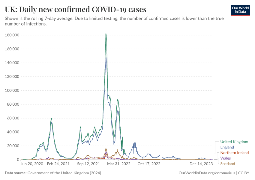 Government of the United Kingdom (2024) – with minor processing by Our World in Data. “UK: Daily new confirmed COVID-19 cases” [dataset]. Government of the United Kingdom, “UKHSA data dashboard” [original data]. Retrieved February 24, 2026 from https://enhance-catalog-improvements.owid.pages.dev:8789/20250909-093708/grapher/uk-daily-new-covid-cases.html (archived on September 9, 2025).