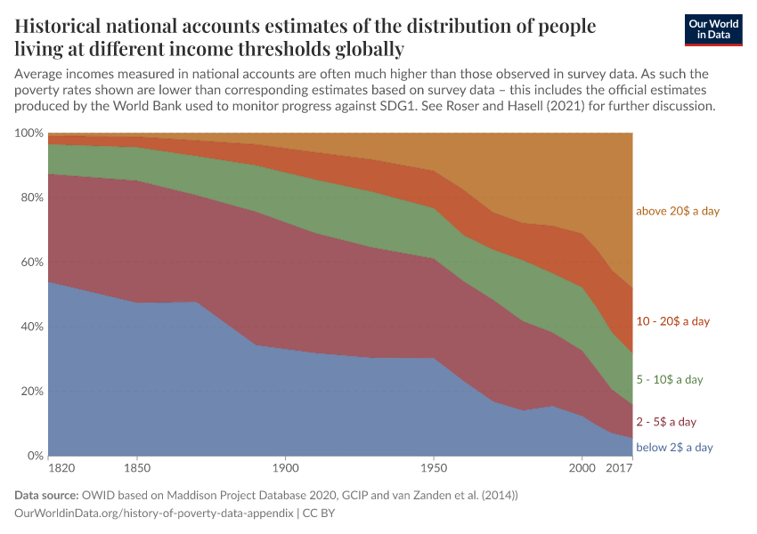 Joe Hasell (2019) - “Data appendix – The fight against global poverty: 200 years of progress and still a very long way to go” Published online at OurWorldinData.org. Retrieved from: 'https://enhance-catalog-improvements.owid.pages.dev:8789/20260128-140124/history-of-poverty-data-appendix.html' [Online Resource] (archived on January 28, 2026).BibTeX citation