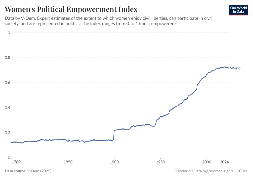 On this page, you can find data, visualizations, and writing on how the protection of human rights has changed over time, how it differs across countries, and how it varies between people of different genders, sexualities, and ethnicities.