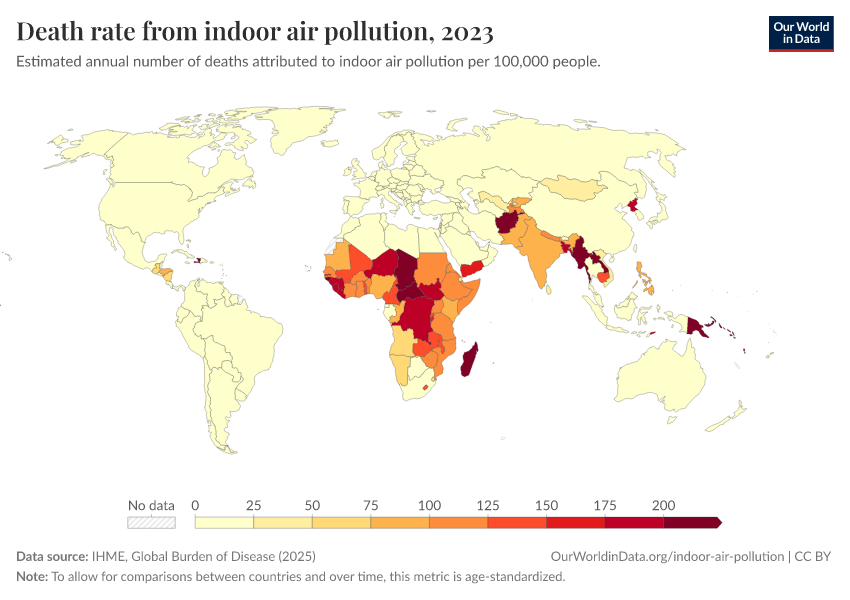 Hannah Ritchie and Max Roser (2022) - “Indoor Air Pollution” Published online at OurWorldinData.org. Retrieved from: 'https://enhance-catalog-improvements.owid.pages.dev/indoor-air-pollution' [Online Resource]BibTeX citation