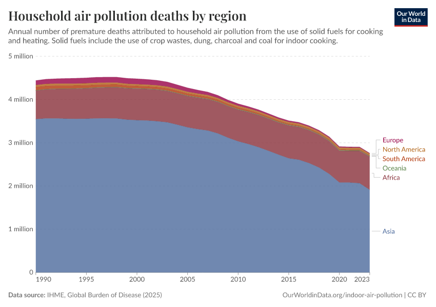This means that despite continued population growth in recent decades, the total number of deaths from indoor air pollution has still declined.