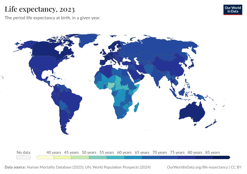 Saloni Dattani, Lucas Rodés-Guirao, Hannah Ritchie, Esteban Ortiz-Ospina, and Max Roser (2023) - “Life Expectancy” Published online at OurWorldinData.org. Retrieved from: 'https://enhance-catalog-improvements.owid.pages.dev/life-expectancy' [Online Resource]BibTeX citation