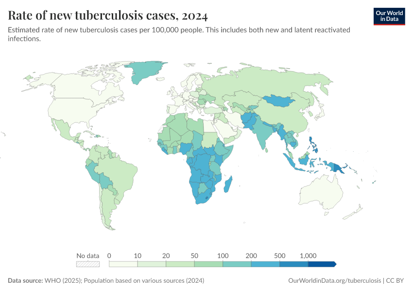 Saloni Dattani, Fiona Spooner, Hannah Ritchie, and Max Roser (2023) - “Tuberculosis” Published online at OurWorldinData.org. Retrieved from: 'https://enhance-catalog-improvements.owid.pages.dev/tuberculosis' [Online Resource]BibTeX citation