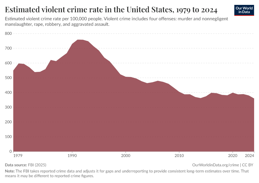 Hannah Ritchie and Fiona Spooner (2026) - “How have crime rates in the United States changed over the last 50 years?” Published online at OurWorldinData.org. Retrieved from: 'https://enhance-catalog-improvements.owid.pages.dev:8789/20260119-000134/us-crime-rates.html' [Online Resource] (archived on January 19, 2026).BibTeX citation